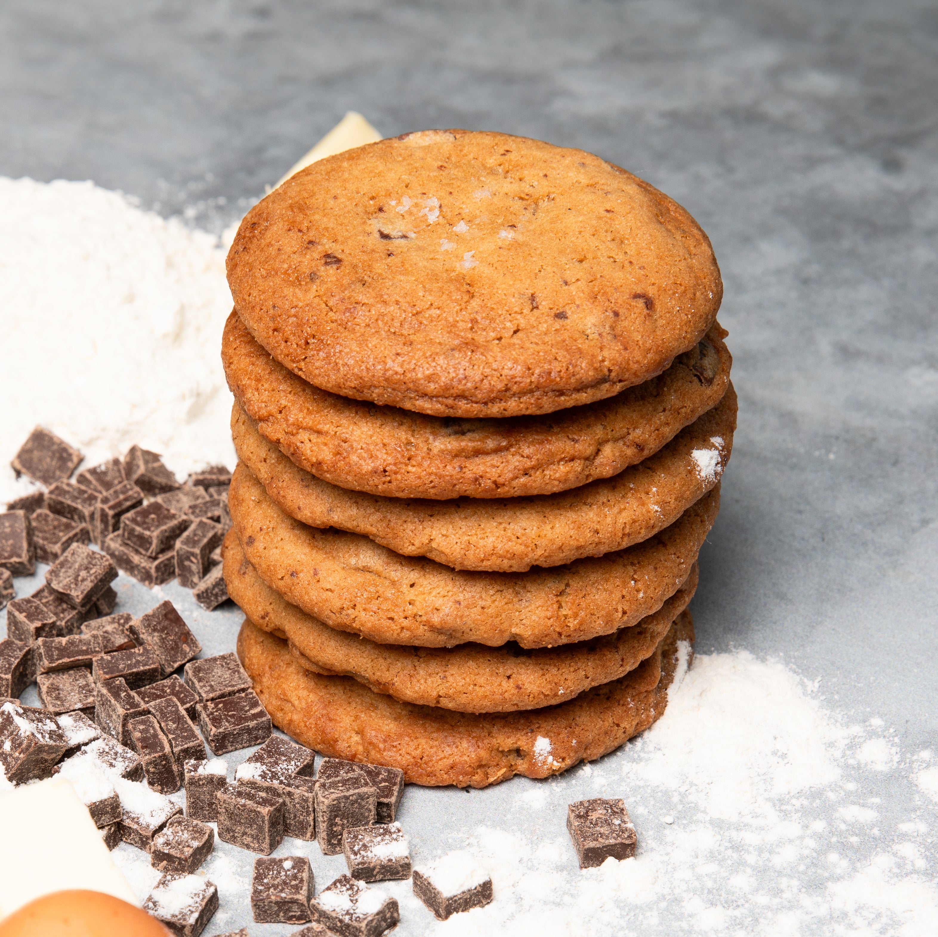Our vegan chocolate chip cookie! Sprinkled with flaky sea salt and baked to perfection, with crisp edges and soft, chewy inside.