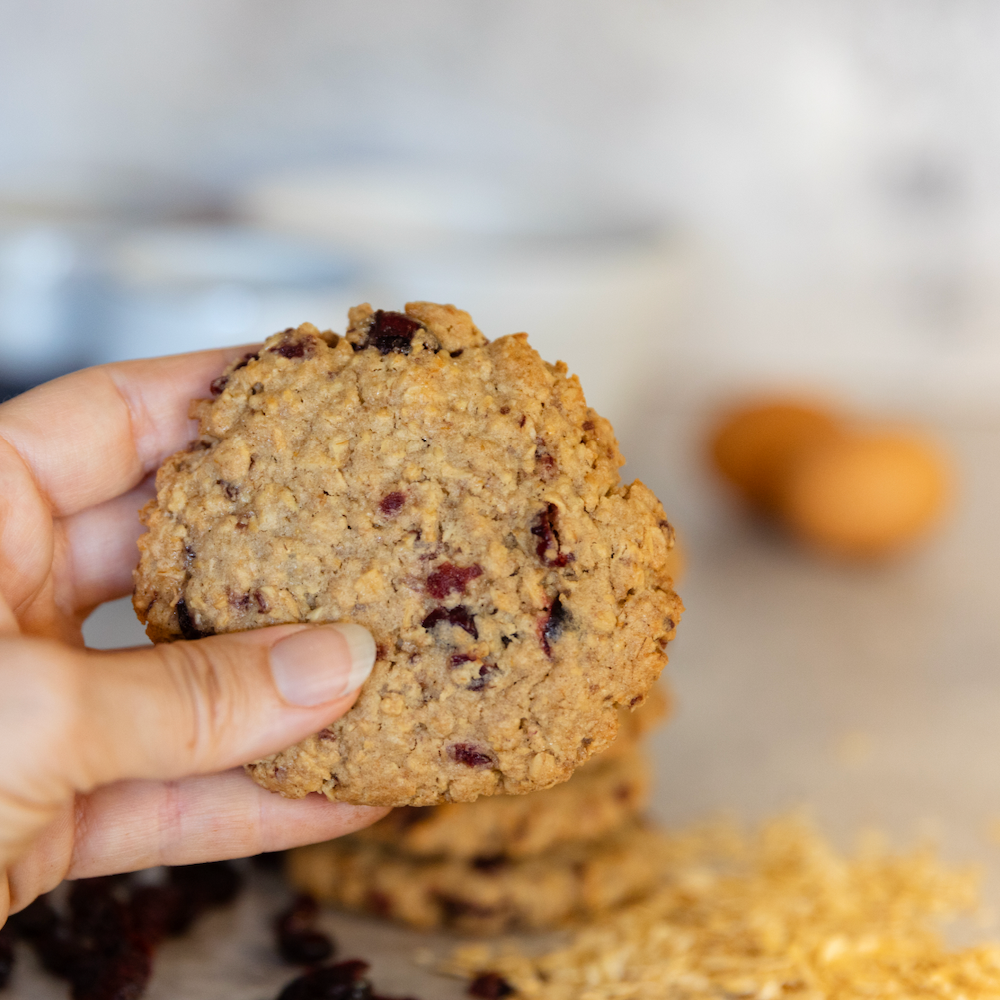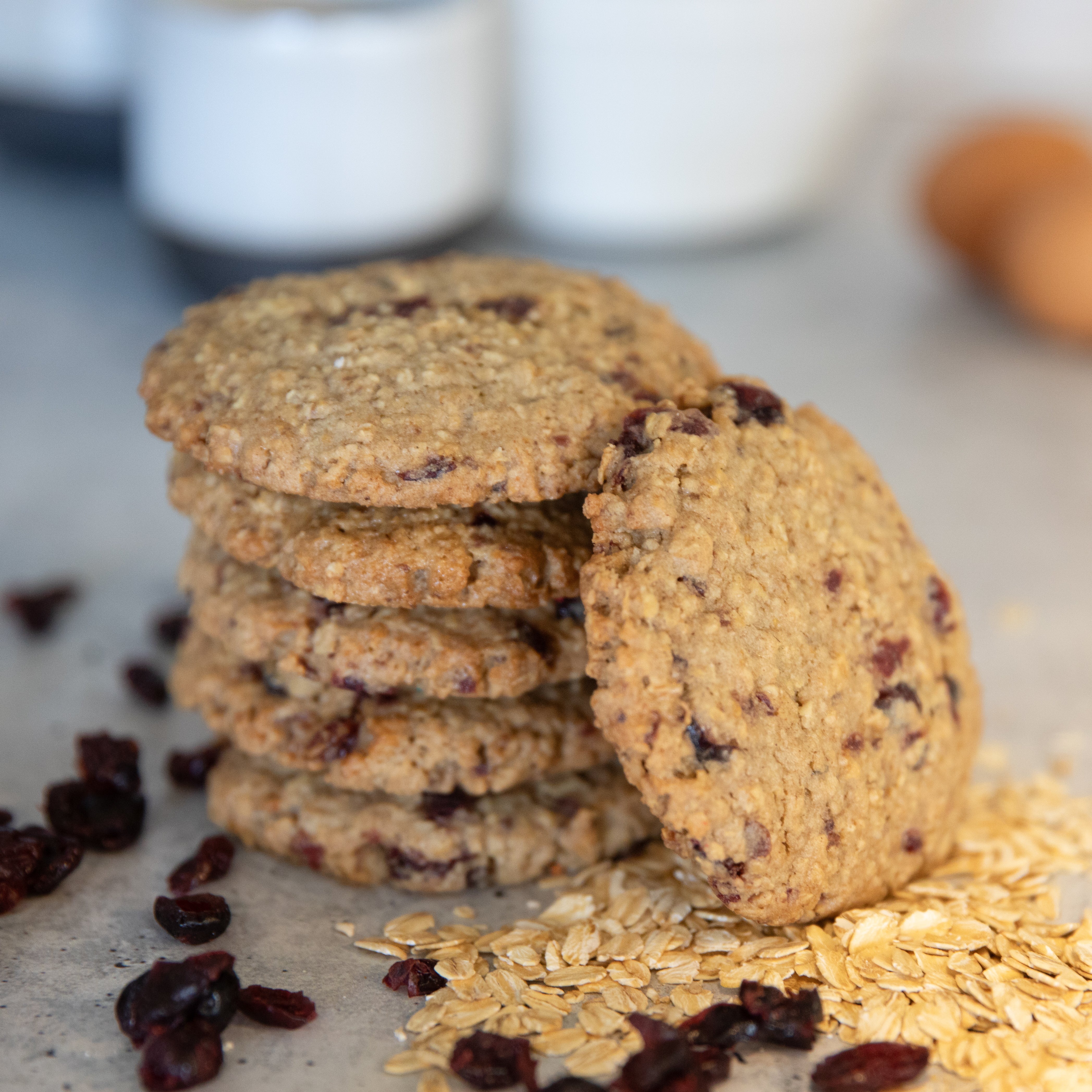 Unbleached flour, white sugar, brown sugar, cage-free whole eggs, baking soda, non-GMO baking powder, Maldon sea salt, butter, oatmeal & vanilla extract, dried cranberries